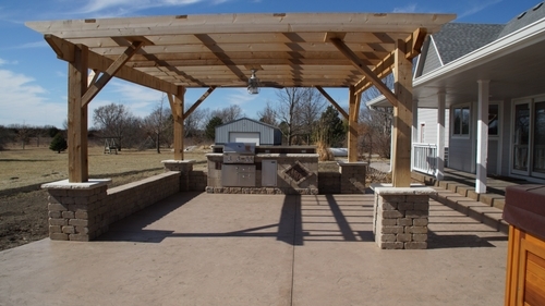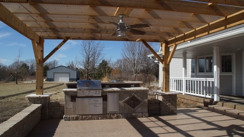 This nice house in the country just needed a fresh look on the outside. The siding and trim was replaced and painted. The outdoor grilling area and fireplace was new construction along with the pergola. The General Contractor for this project was Winston Brown Construction out of Topeka, KS. Project Year: 2015 Project Cost: $50,001 - $75,000 Country: United States Zip Code: 66610